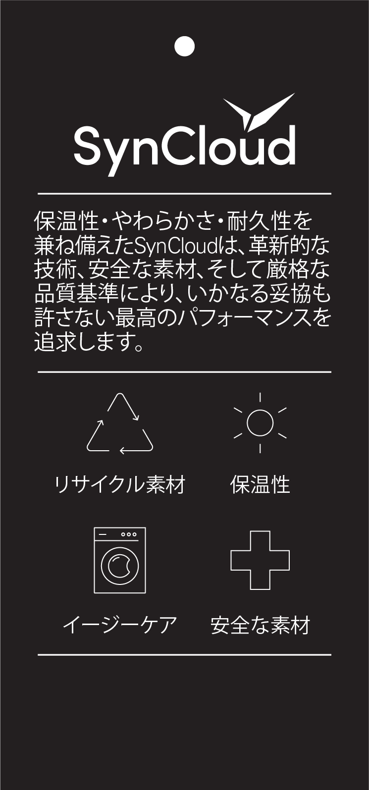 PTT(Polytrimethylene terephthalate)素材で作られており、柔らかさと保温性に優れ、復元力も優れています。